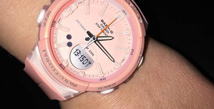 Компания CASIO представила пополнение часов BABY-G для спортивных девушек с функцией шагомера. Кроме привычных 5-ти будильников, нескольких часовых поясов, таймера, секундомера- присутствует счетчик шагов (шагомер). Он способен различить простой шаг, бег и бег трусцой. Фактически данные часы имеют функционал фитнес-трекера. Можно задавать ежедневные цели с уведомлением о достижения цели, и минутная стрелка будет показывать текущий прогресс одним нажатием кнопки. Есть функция предупреждения о длительных периодах бездействия с подачей звукового сигнала для напоминания пользователю о необходимости быть более активным, географическое отображение количества шагов за последние пять часов. Есть  журнал, который отображает ежедневные данные за 8 дней и еженедельные данные за 4 недели и количество дней, за которые был достигнут запланированный результат.